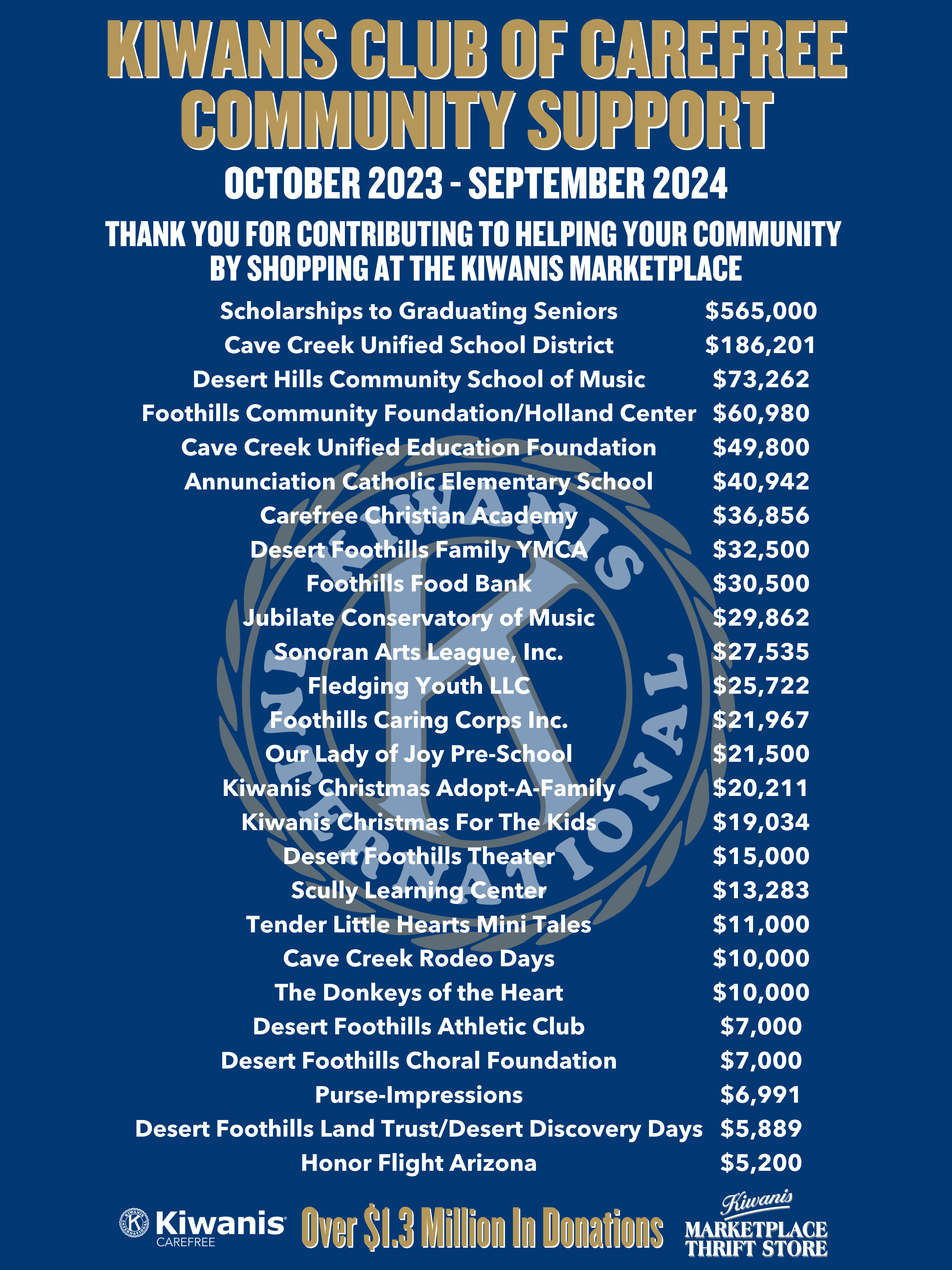 In the 1980s the Kiwanis Club of Carefree decided to try selling used household goods as a special fund raising event. Probably a simple multi-household yard sale. No one then dreamed what it might evolve into more than thirty years later.